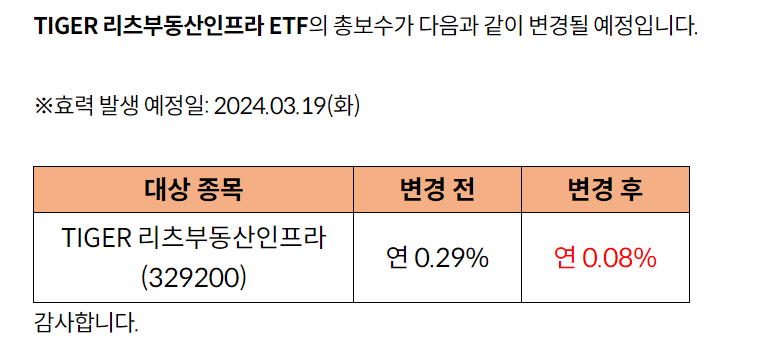 국내상장한 리츠 ETF중에서 0.09%로 가정 저렴한 보수로 투자가 가능