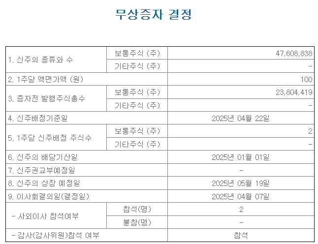 | 제이에스코퍼레이션 무상증자 발표 (0) | 2025.03.25 |