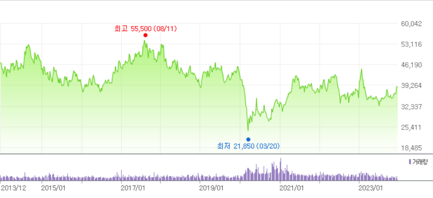 신한지주 회사 역대 배당금 기록과 주가그래프