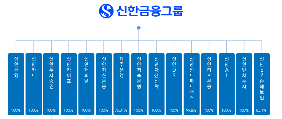 주식을 한국증권거래소에 상장하였습니다. 이러한 배경에는 다음과 같은 자회사들의 사업내용을 포함하고 있습니다. (은행업, 신용카드업, 금융투자업, 생명보험업, 여신전문업, 자산운용업, 손해보험업 )