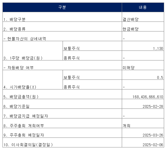 | 케이티앤지 배당금 발표_2024년 결산배당 (1) | 2025.02.09 |