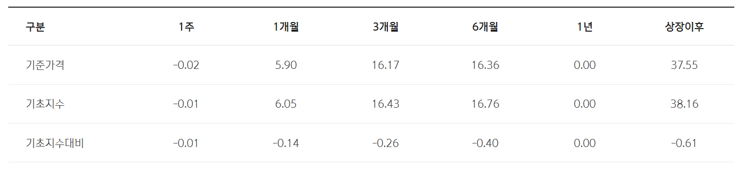 해당 소부장 ETF는 최근에 주춤한 경향이 있었지만 시장이 반등을 하면서 16%라는 단위 수익률을 기록했습니다. 또한 상장이후에는 37.55%라는 수익률을 달성하고 있습니다. 반도체 소부장 시장의 국산화로 인해서 앞으로 더욱더 성장성이 있어 수익률이 조금더 올라가지 않을까 하는 생각도 하게 됩니다.