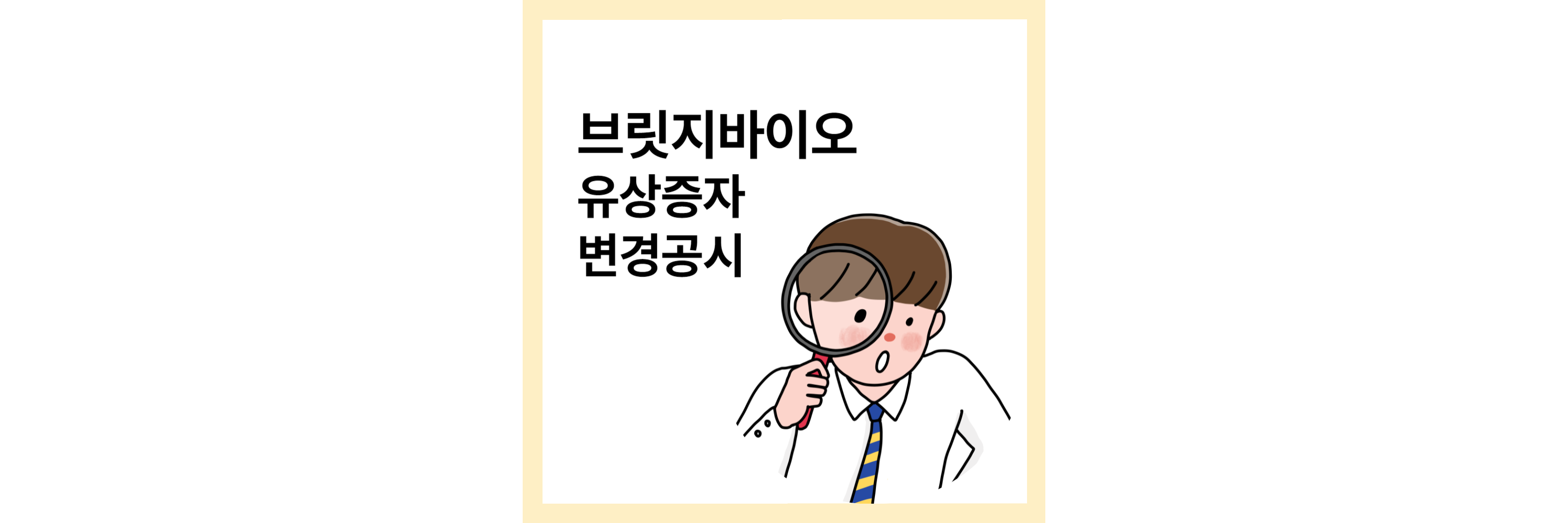 안녕하세요? 지난 번에 포스팅 브릿지바이오의 유상정보에 대해서 포스팅을 하였으나 해당 공시에 정정이 있어 다시 한번 포스팅 해보고자 합니다. 감사합니다.