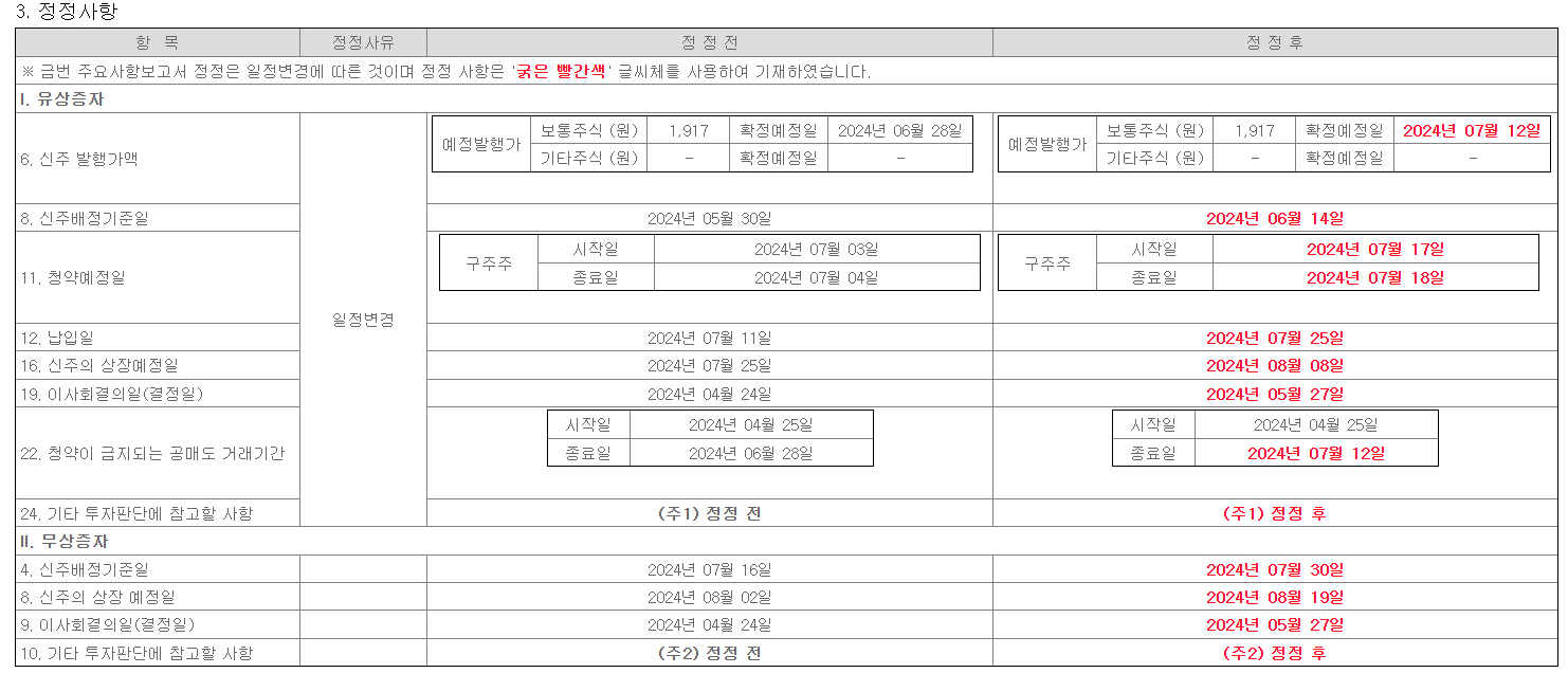 유상권리를 받을 수 있는 날은 5월 30일에서 6월 14일로 변경이 되었으며, 구주 청약일은 7월 17일부터 시작입니다.