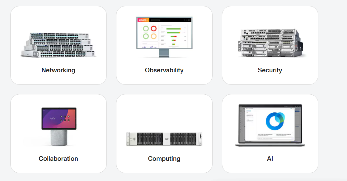 스위칭 제품, 공개 및 개인 유선 또는 모바일 네트워크를 상호 연결하는 라우팅 제품, 데이터 센터 제품, 음성, 비디오 및 데이터 애플리케이션에 사용하기 위한 무선 액세스 포인트(WAP) 등의 제품들이 있습니다.