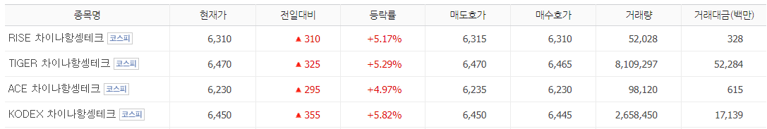 대표적으로 미래에셋과 삼성자산의 ETF가 있을 수 있겠으며 그 이외에 RISE ETF에서도 중국에 투자하는 ETF가 인덱스로 지지하고 있습니다.