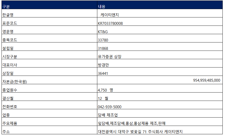 케이티앤지 회사소개