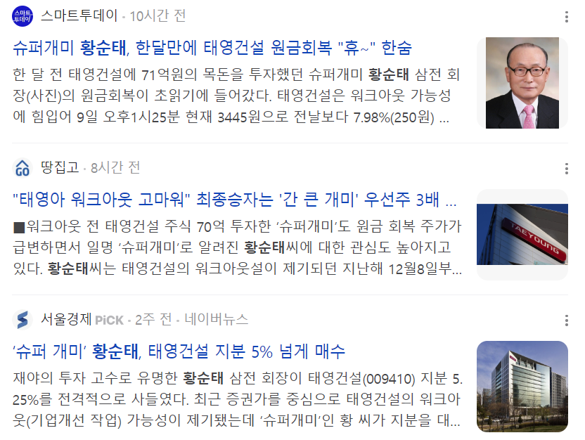 태영건설 슈퍼개미의 투자