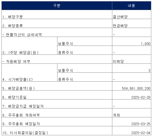 | 기아 배당금 발표_2024년 결산배당 발표공시 (3) | 2025.02.02 |