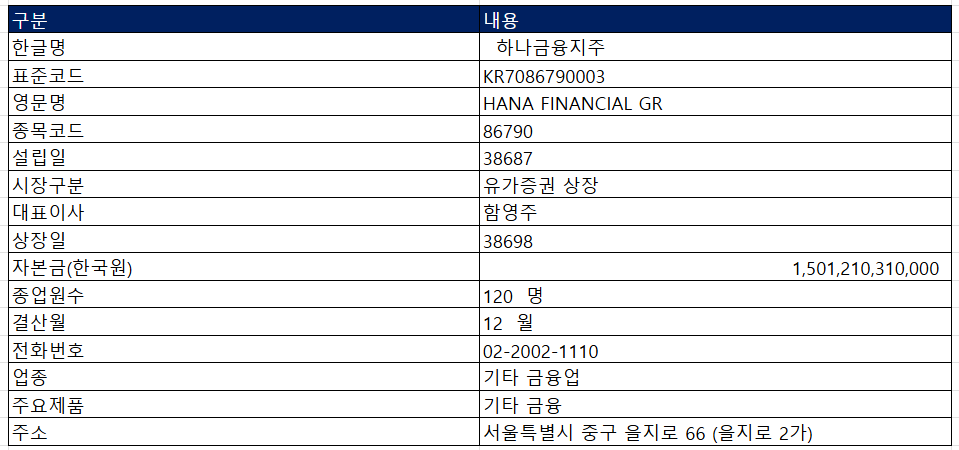 하나금융지주 회사소개