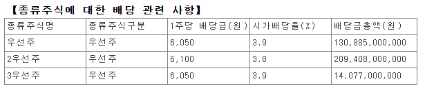 | 3. 1주당 배당금(원) | 종류주식 | 6,100 |