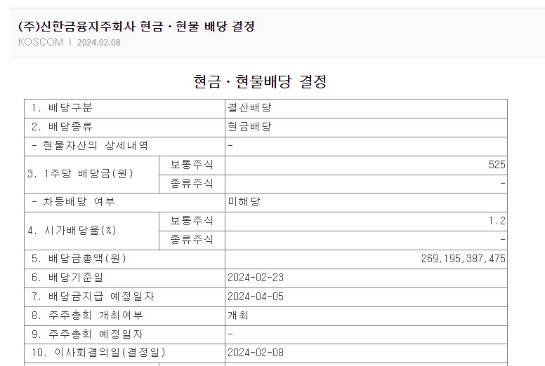 신한지주 2023년 결산배당 발표