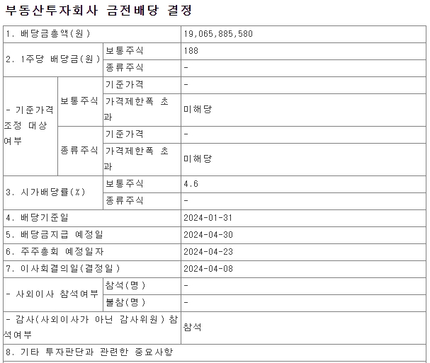 | 2024년 3월 배당 기준일 발표 기업 (62) | 2024.02.28 |
