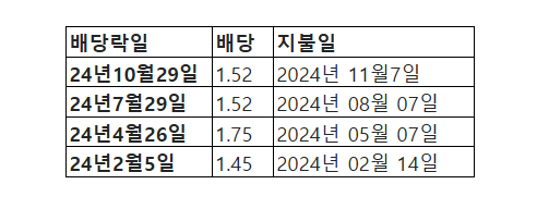 위에 도표와 같이 추가적인 배당 세부내역이 궁금하신 분이 있다면 아래의 링크를 클릭하여 주세요.