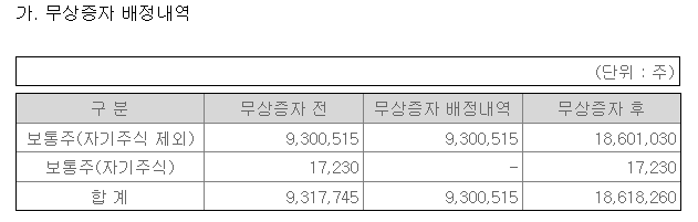 해당 무상증자에서 비율이 1이라고 하였는데, 보통주 기준으로는 1의 배수로 증자가 되지 않는 공시 내용이 있습니다. 이는 회사가 자기주식을 가지고 있기 때문에 이러한 현상이 생기게 됩니다. 회사가 소유한 주식에 대해서 무상증자를 할 필요가 없으니 이러한 값이 나온다고 생각해 주시면 좋을거 같습니다.