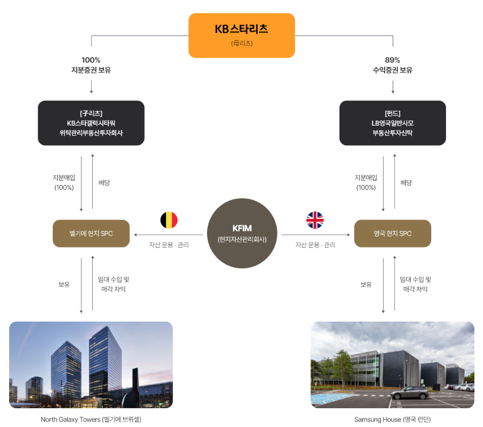 KB금융 그룹의 첫 상장 리츠로 2022년 10월 4일에 공모가 5천원에 상장을 하게 되었습니다. KB금융 그룹에 네트워킹과 전문인력 들을 통해서 훌륭한 운용성과를 투자자에게 제공하고자 노력하고 있는 리츠 입니다. 첫 공모 당시 삼성전자와 연계한 투자를 하고자 하였습니다. 국내의 오피스지역보다는 해외의 오피스 지역에 투자하는 전략을 선택하였습니다. 주요 투자처로는 벨기에와 영국에 투자를 하고 있는 리츠 입니다.
