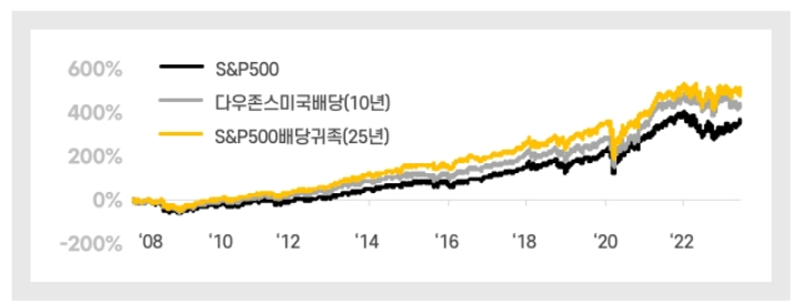해당지수는 배당귀족중에서 최소 50년 이상의 배당금을 인상시켜준 지수들의 성과를 보여주고 있습니다. 해당지수가 지표화 되어 대중에게 선보인 것은 짧은 기간 입니다.