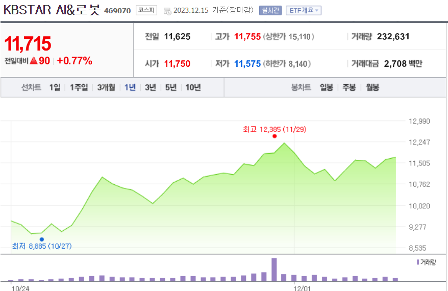 안녕하세요? 이번 시간에는 AI&로봇에 투자하는 ETF 하나를 소개해보고자 합니다. 해당 ETF는 얼마전에 상장한 KBSTAR AI&로봇 ETF 입니다. 해당 정보에 관심이 있으신 분이 있다면 많은 도움이 되었으면 좋겠습니다. 구독과 좋아요, 광고클릭은 블로그 운영에 큰 도움이 됩니다. 감사합니다.