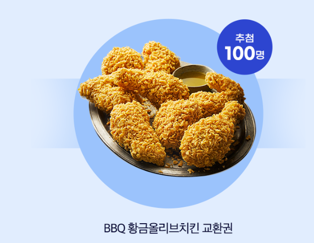해당 이벤트를 공유하시는 분들에게 추첨을 통해서 아래의 황금올리브 치킨을 드린다고 하오니 SNS와 개인계정을 가지고 계신 분들은 공유이벤트에도 참여해 보시면 치킨을 야무지게 먹을 수 있을거 같습니다.