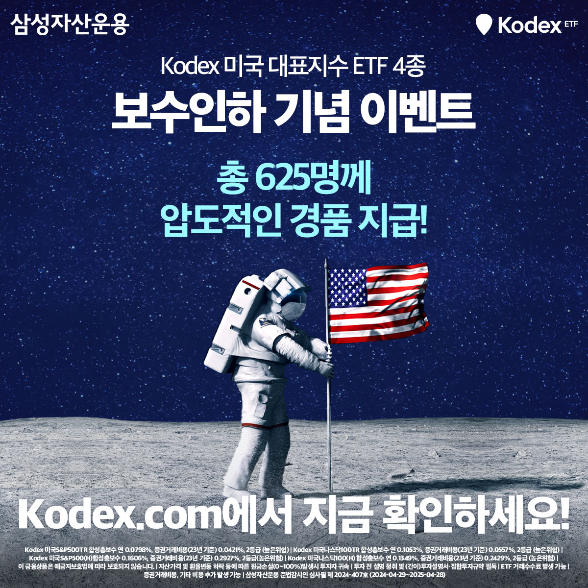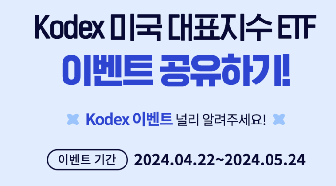 안녕하세요? ETF 투자하시는 투자자들 최근 많아지고 있는 추세입니다. 이러한 투자자들에게 반가운 소식이 있습니다. 삼성자산운용의 대표 ETF인 KODEX ETF중 미국대표지수를 추종하는 ETF 4개의 ETF가 보수를 인하 한다는 소식입니다. 이런 희소식과 더불어 이벤트를 한다고 하오니 꼭꼭 참여해 보십시오.