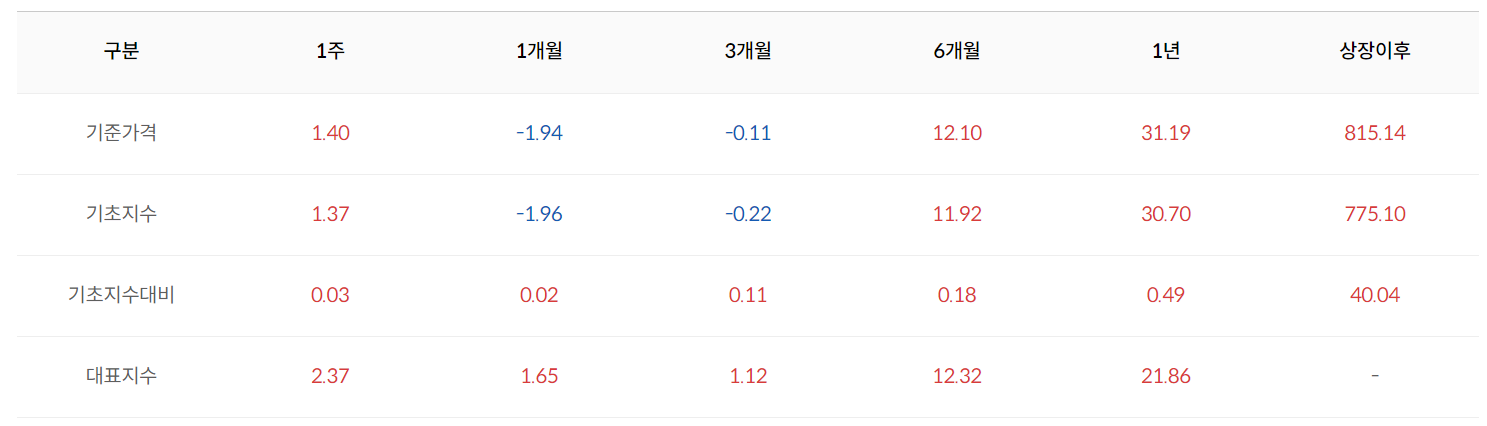 - 산출방법 : 수정된 시가총액 가중평균 방식 및 분기별 리밸런싱(3/6/9/12월)