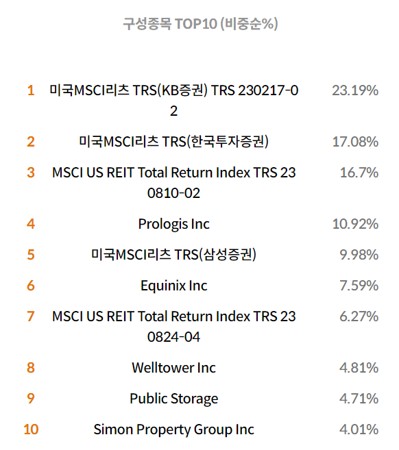 - 구성종목 : 미국 주식시장에 상장된 리츠