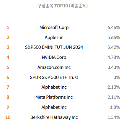 해당 ETF에서는 위와 같은 포트폴리오로 상위 종목을 구성하고 있습니다.