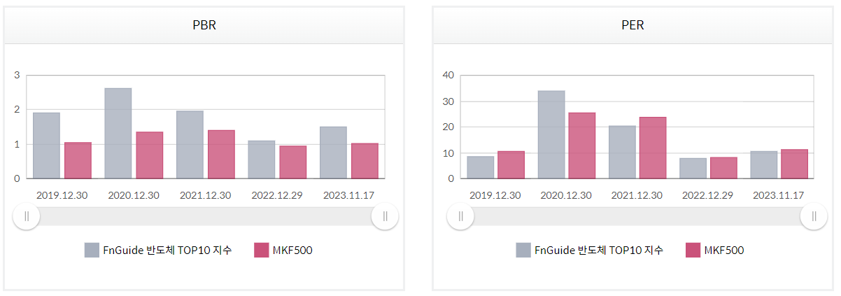 - 지수개요: 유가증권시장 및 코스닥시장 상장종목 중 FICS 중분류 기준 '반도체'에 속하는 종목들 중 종목 선정일 기준 1개월 시가총액 평균 값 상위 10종목으로 구성