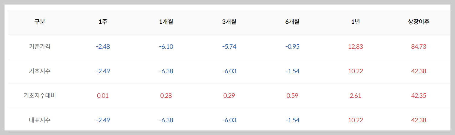해당 ETF는 상장이후부터 총 수익률 85%의 수익률을 달성했습니다. 기초지수는 42%의 수익률을 달성하였지만 이러한 수익률의 차이는 배당금의 차이가 반영된것이 아닌가 생각해봅니다.